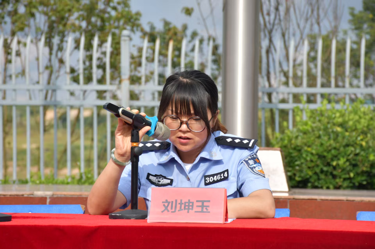 下午16:30,升旗广场上,曲靖市公安局经开区分局翠峰派出所刘警官为全校师生带来预防校园欺凌专题讲座。