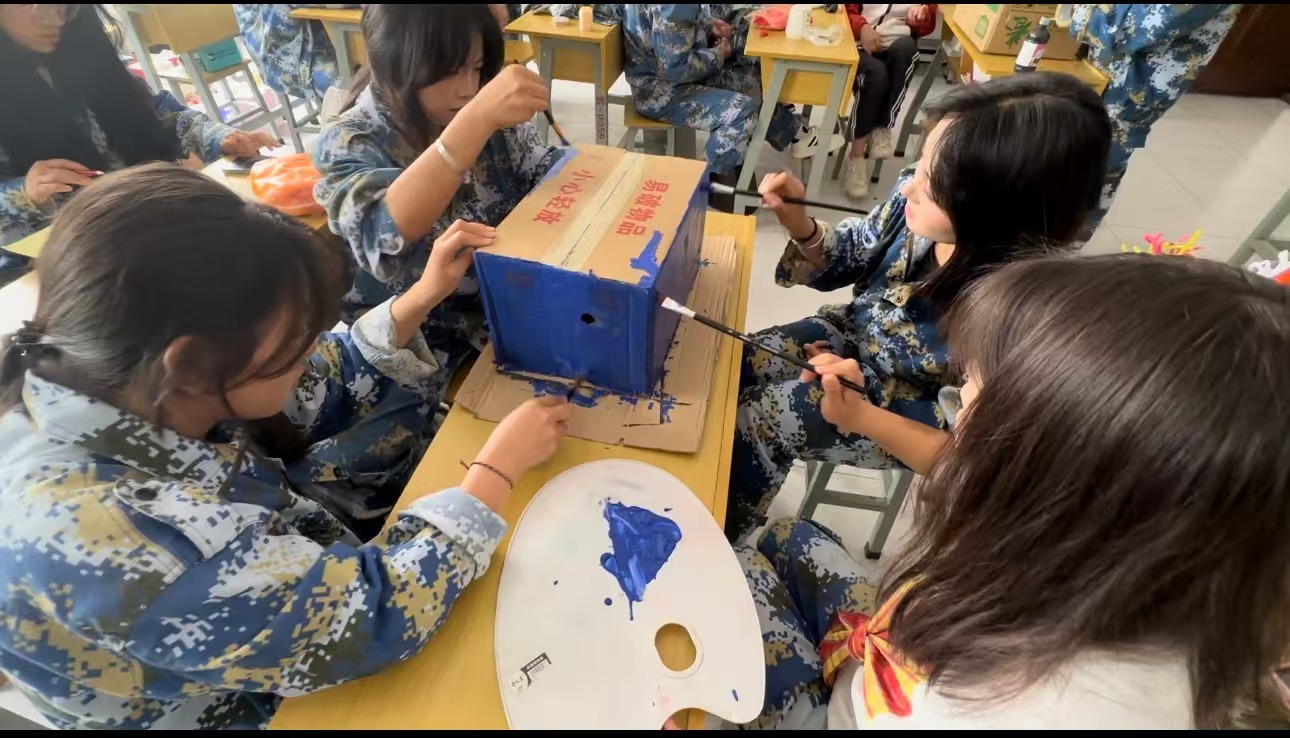 此次活动周,学校精心策划了一系列趣味实践活动。“垃圾分类投放竞赛”紧张又有趣,同学们化身“分类小能手”,在模拟分类垃圾桶前快速准确地投放“垃圾”,在比拼中巩固分类知识。“变废为宝”创意活动更是亮点频出,废旧纸箱变成浩瀚太空,塑料瓶化作可爱花盆,一件件创意作品不仅展示了同学们的动手能力,更诠释了“垃圾是放错地方的资源”的理念。学校举办的创意展览,吸引众多师生驻足欣赏。此外,党员及学生志愿队活跃在校园各处,耐心引导师生正确投放垃圾,用实际行动传递环保正能量。