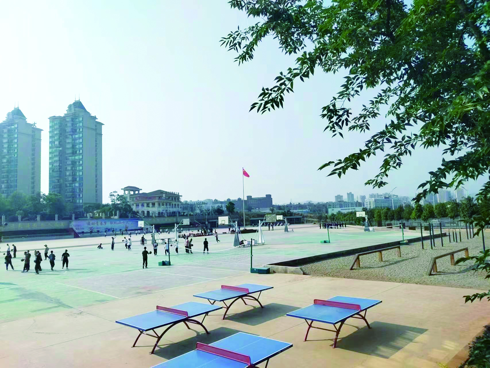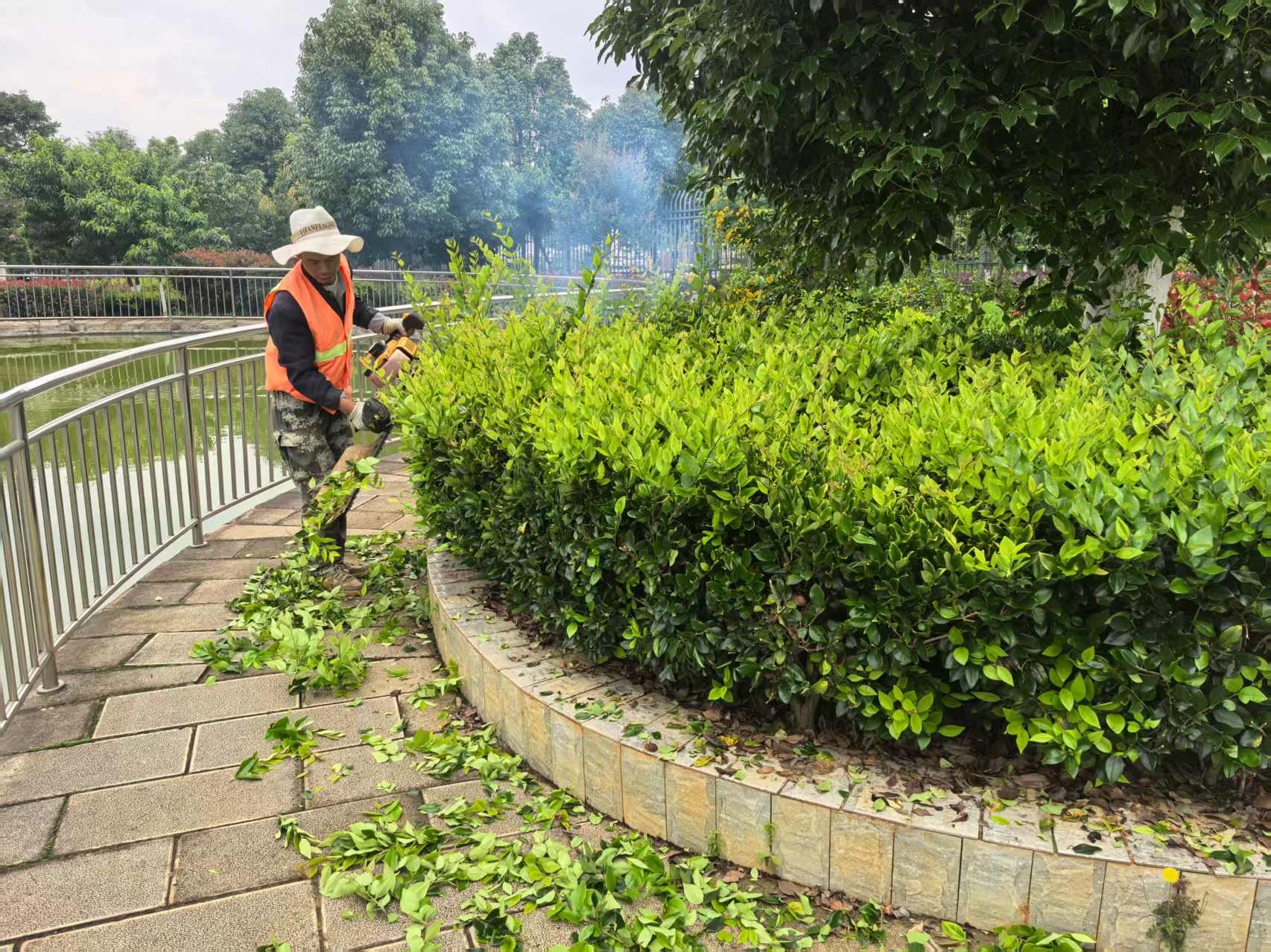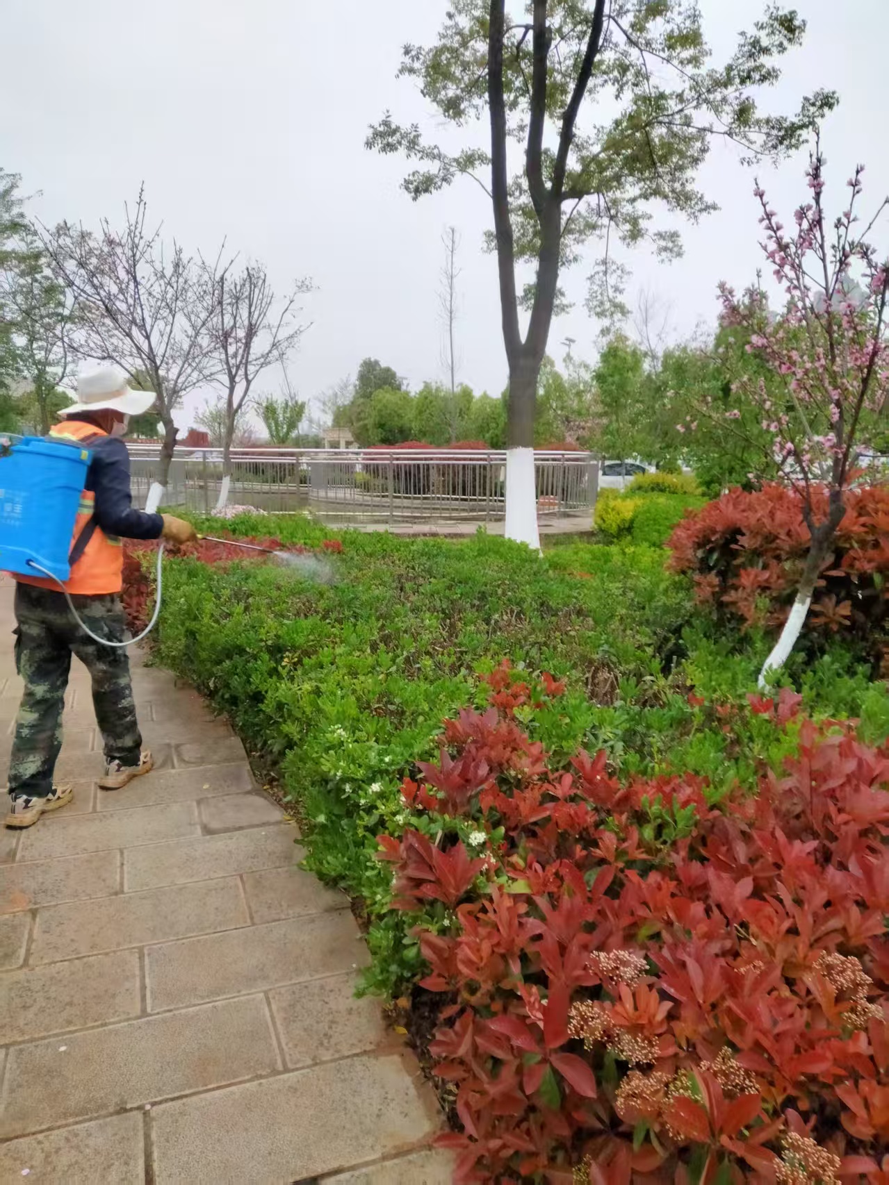 后勤园艺师化身“绿色画家”,精心设计校园绿化景观。造型别致的绿化带四季常青,教学楼旁的小花园更是生机盎然,春华秋实,李花桃香,池鱼灵动,每一处绿意都经过巧妙构思。他们坚持定期修剪、科学灌溉、及时补植,让校园始终保持花木扶疏、葱郁繁茂的美景。这片绿意不仅带来视觉享受,更成为环境育人的生动课堂,为师生营造出清新宜人、启迪心灵的学习生活空间。