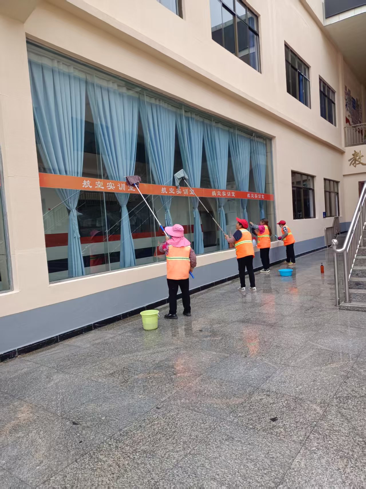 后勤保洁队伍如同校园的“美容卫士”,全力守护校园洁净。教学楼内窗明几净,地面光洁;宿舍区温馨整洁,公共区域清爽有序。无论晴雨寒暑,他们定时清扫、深度保洁、规范处理垃圾分类,始终保持高标准、严要求。通过不懈努力,“窗明几净”成为靖宁职校最直观的“名片”,有效保障师生健康,提升校园整体品质。