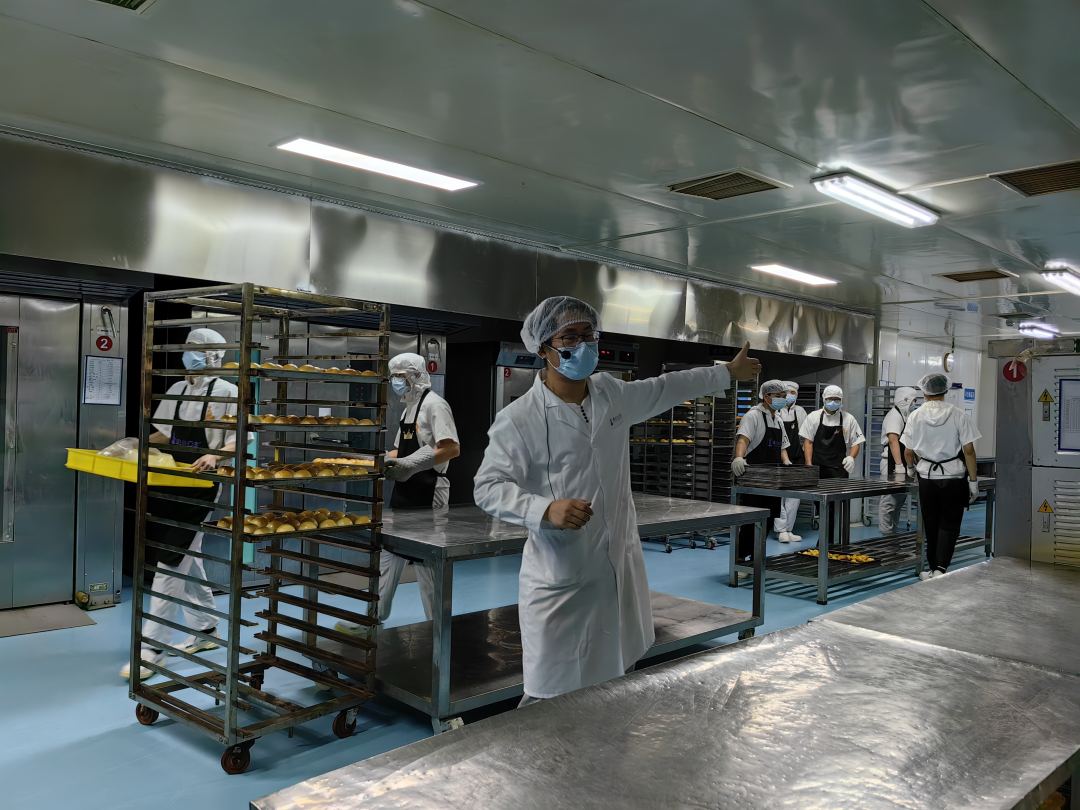 踏入香气四溢的烘焙车间,映入眼帘的是整齐划一的生产流程和工人们专注认真的工作状态。