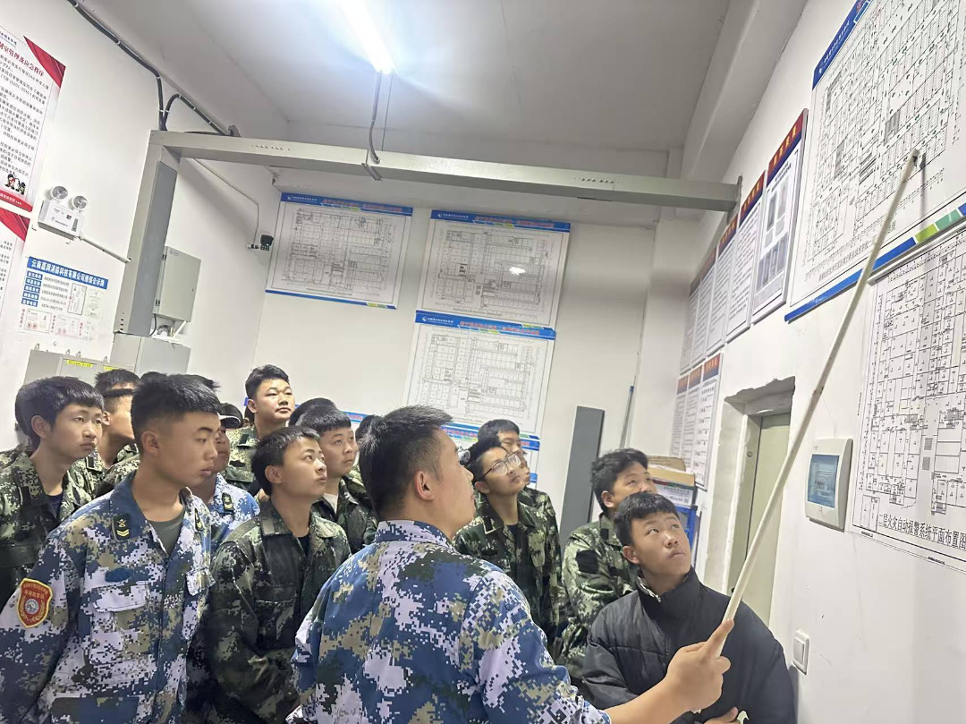在消防控制室,同学们亲眼见证火灾报警控制器如何精准定位火情、统筹全局。通过模拟推演,理解从报警确认到广播疏散、电源切换、风机启动、水泵供水的全系统联动响应,感受“一秒决策”背后的技术支撑。
